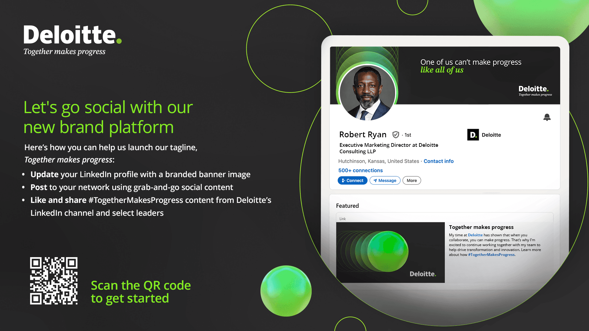 In May 2025, Deloitte introduced its first-ever brand tagline, “Together Makes Progress,” marking a historic milestone since the firm’s founding. The launch was supported by three national TV spots and many social activations that amplified the message and celebrated Deloitte’s commitment to collaboration and collective growth.